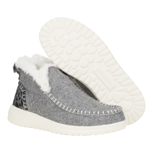 Like sticking your foot into a boot-shaped sweater. except it’s the Denny Leopard boot. Outsole so light and insole so snug. Pull-tab to help slide-on when your fingers get chilled.