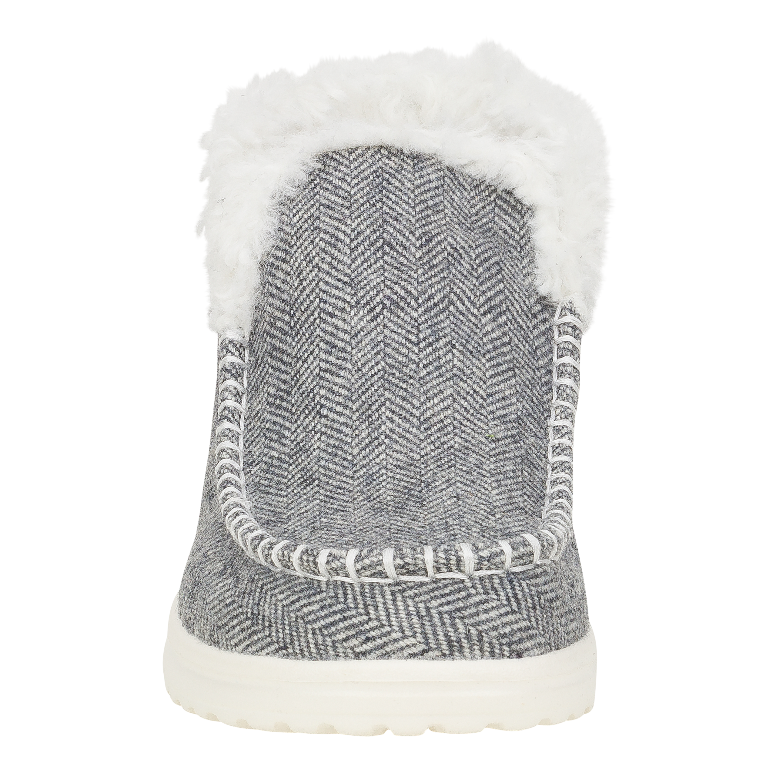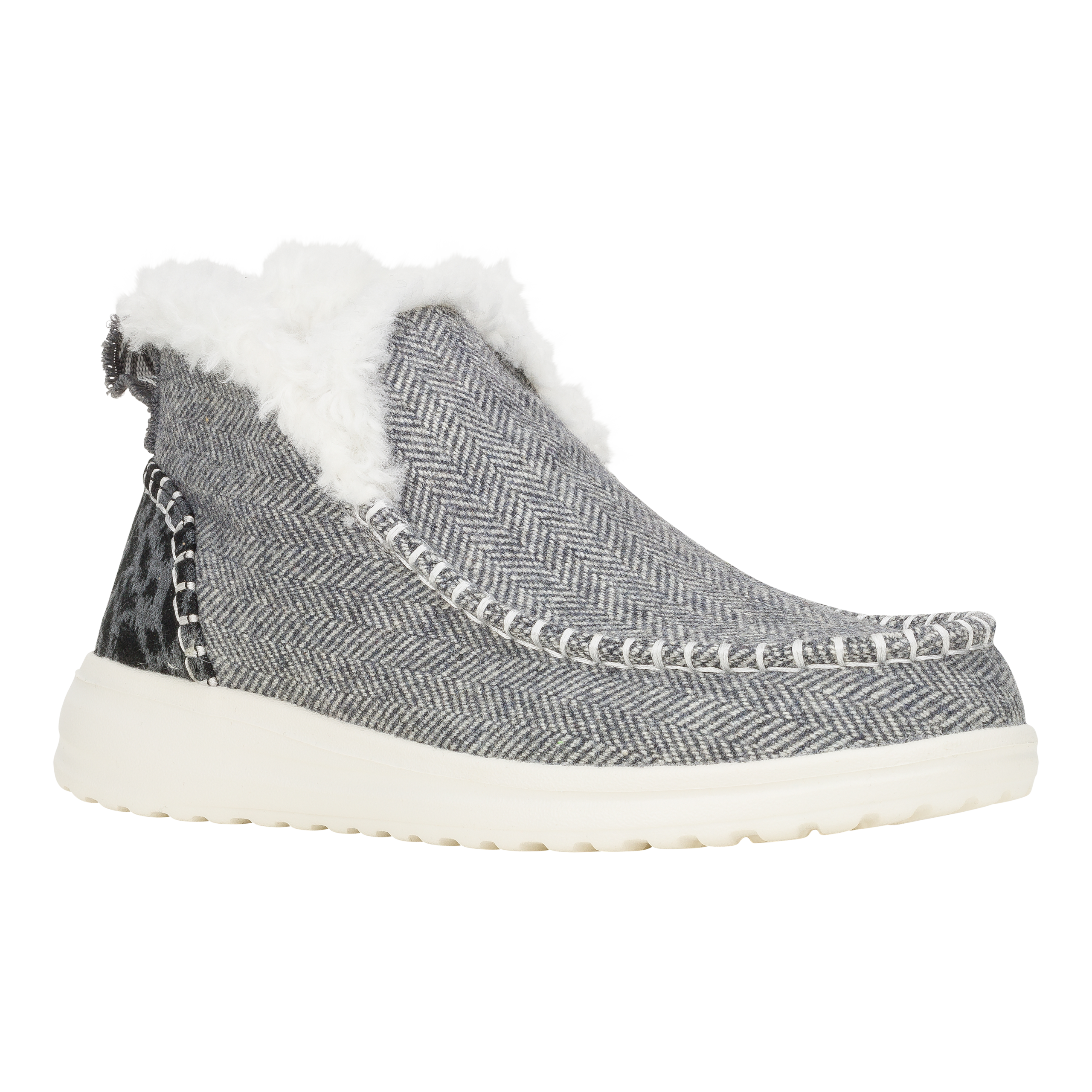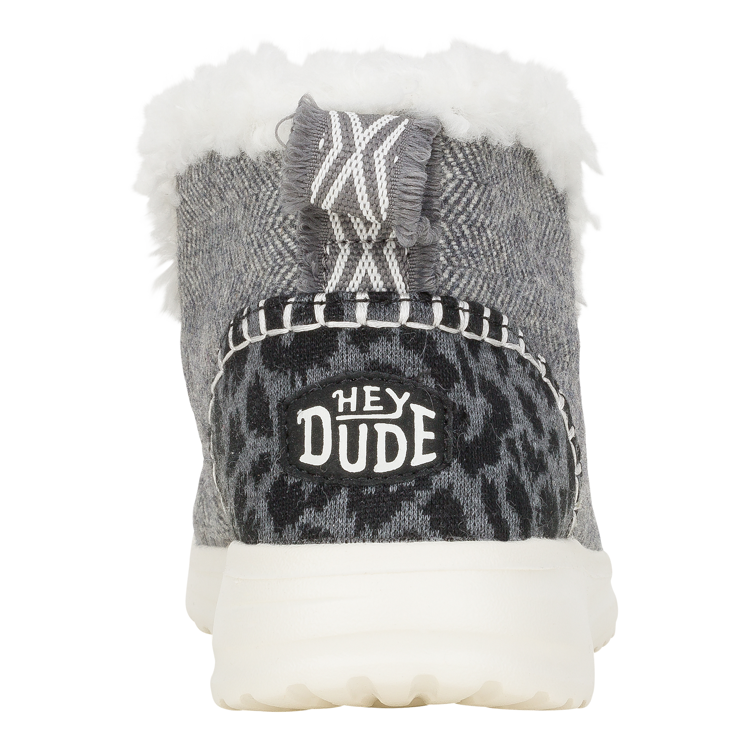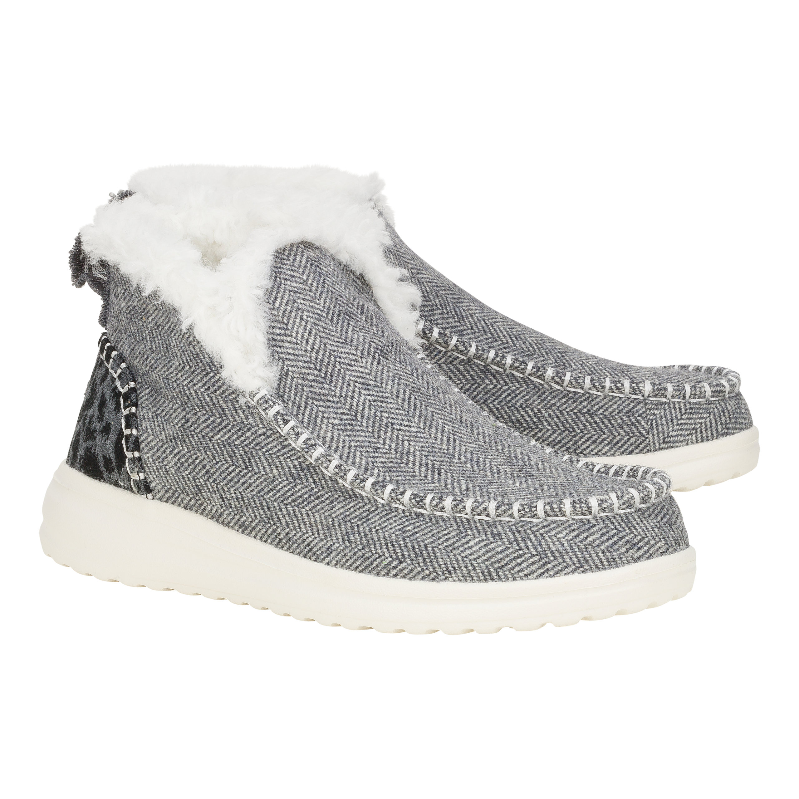 Like sticking your foot into a boot-shaped sweater. except it’s the Denny Leopard boot. Outsole so light and insole so snug. Pull-tab to help slide-on when your fingers get chilled.