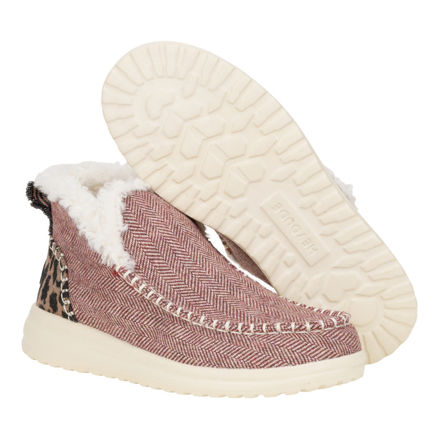 Like sticking your foot into a boot-shaped sweater. except it’s the Denny Leopard boot. Outsole so light and insole so snug. Pull-tab to help slide-on when your fingers get chilled.