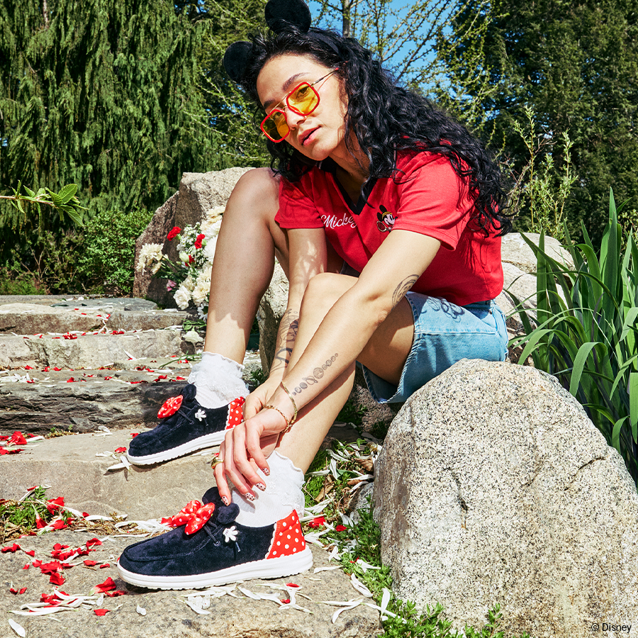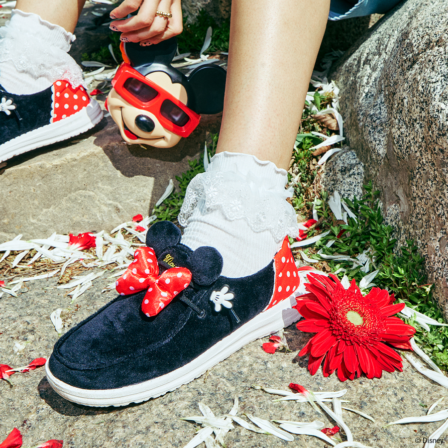 Everyone’s favorite sweetheart is now on a HEYDUDE™ shoe. The Wendy Funk Minnie has you Disney-decked from bows to toes. Featuring Minnie’s signature polka dot pattern. a Minnie hand lace cover. Minnie ears and black and white Minnie head print lining; this shoe is so cute it will make you blush. Perfect for Disney lovers of all ages.