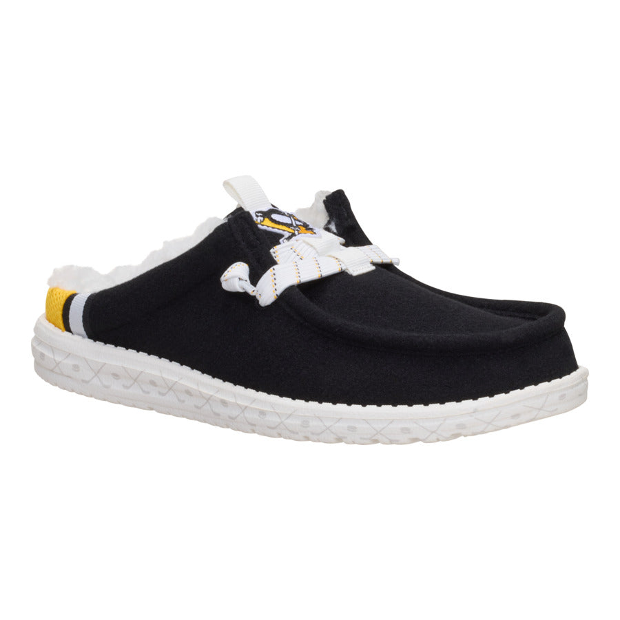 For the Pittsburgh Penguins® fans who live for every face-off. goal. and horn blast. The HEYDUDE??x NHL® Pittsburgh Penguins® Wally Slip delivers signature HEYDUDE??/span> comfort wrapped in official team pride so you’re set from pre-game to the final buzzer. Go Pens??
