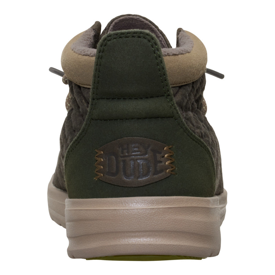 Quilted on the outside with a cozy microfleece lining. these Wally Mid shoes swaddle your feet in softness and warmth without losing their famous HEYDUDE??cool. The easy-on system and elastic laces mean you don’t have to tie keep the fit snug and hassle-free. The lightweight. flexible sole makes every step a delight.
