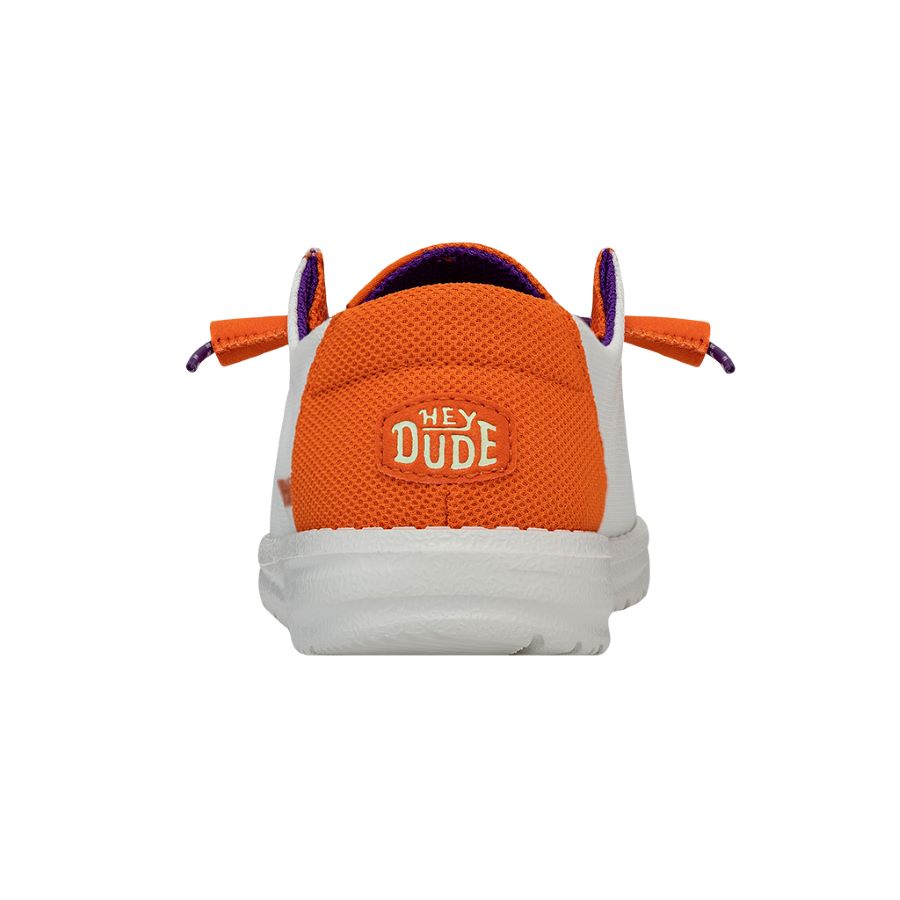 The Women’s Wendy now screams school spirit! Show your support for the Clemson Tigers in style with a unique design featuring the bold team colors. Made with signature HEYDUDE??/span> comfort. lightweight materials. and a slip-on design. these are perfect for all-day wear to bring you and your crew from the tailgate to the game.